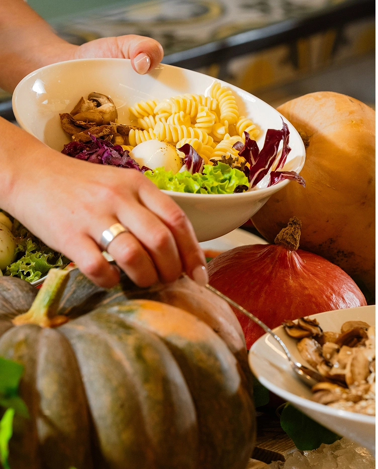 À midi, une richesse de couleurs et saveurs créent l’effervescence au restaurant, à la pizzeria et au comptoir.